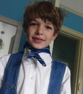 Elliot went off looking a little like David Essex with his Falmer waistcoat and neckkerchief - again last minute finds at a charity shop!